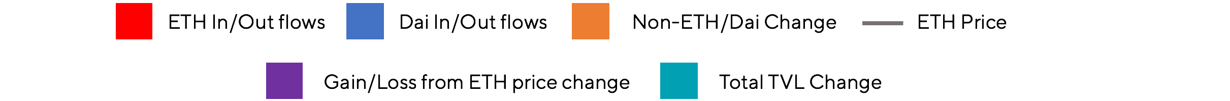 “Gain/Loss from ETH price change” - the TVL change that is attributed to the rise (or fall) of the value of ETH; does not account for new flows.
