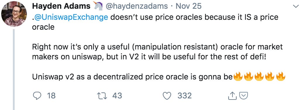Tweet of the Week: Uniswap as an Oracle