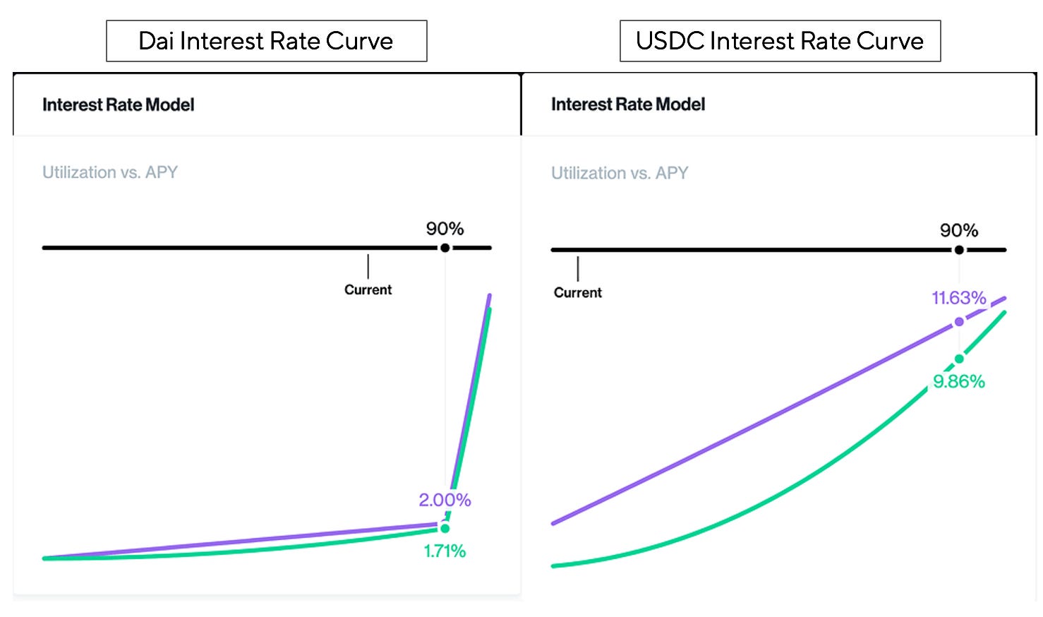 The COMP distribution patch was intended to make crypto dollar borrowing and lending the most attractive for yield farmers, but Compound uses different interest rate models for Dai, USDC and USDT, as Maker’s Head of Risk Cyrus Younessi highlighted on the Maker forums: