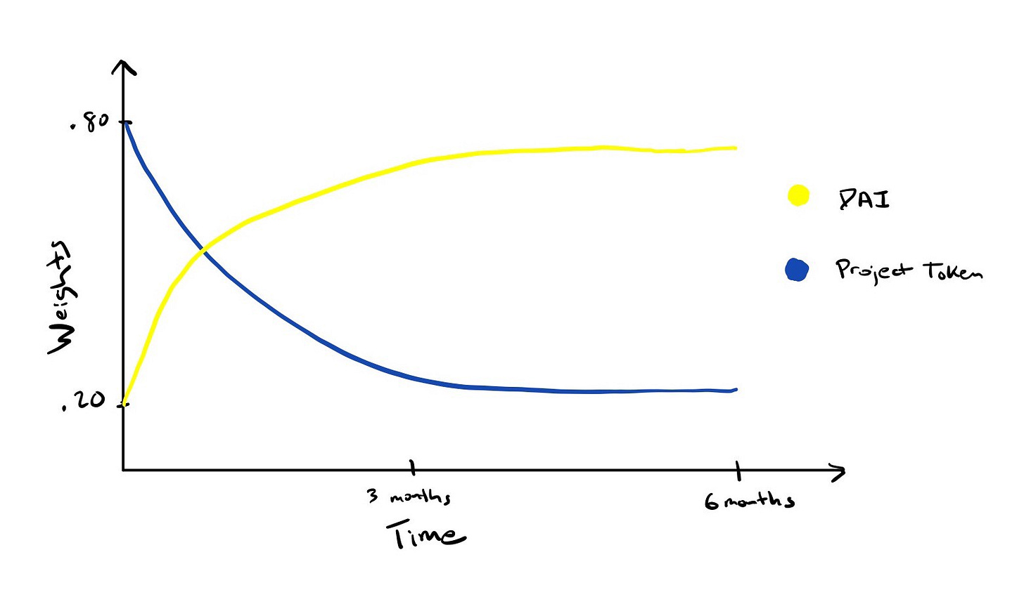 A team could set an initial price with a weight of 20% ETH 80% new token, which would be more capital efficient, and then set the rates of the Balancer pool to change over time, in order to slowly build liquidity. McDonald says that projects can define the token weights with an exponential curve that adjusts the weights down after launch, which “drops the value of the token in the pool [and] discourages an eventual price spike due to early speculation.”