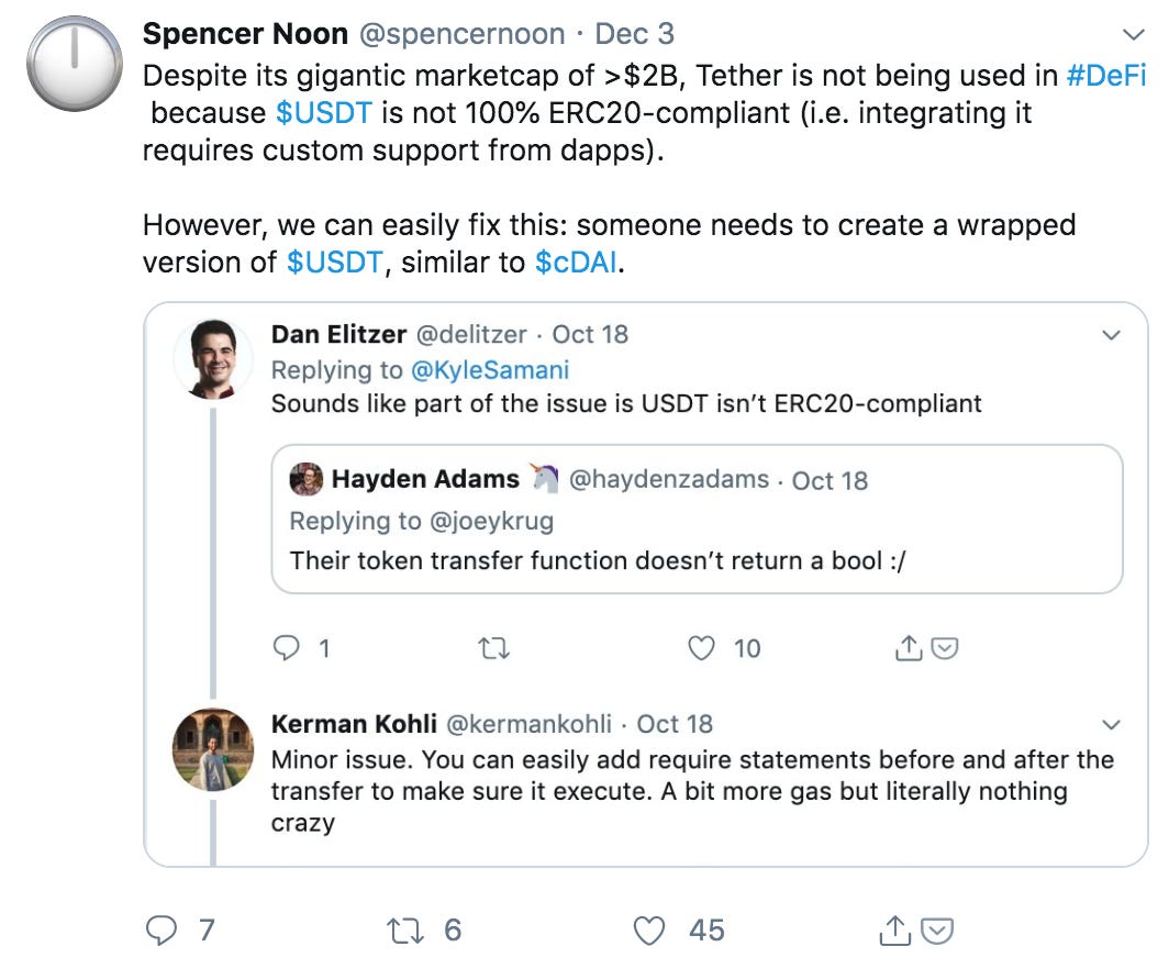 Tether and DeFi have yet to become fully acquainted with each other. Spencer Noon highlights issues with the token format Tether uses on Ethereum.